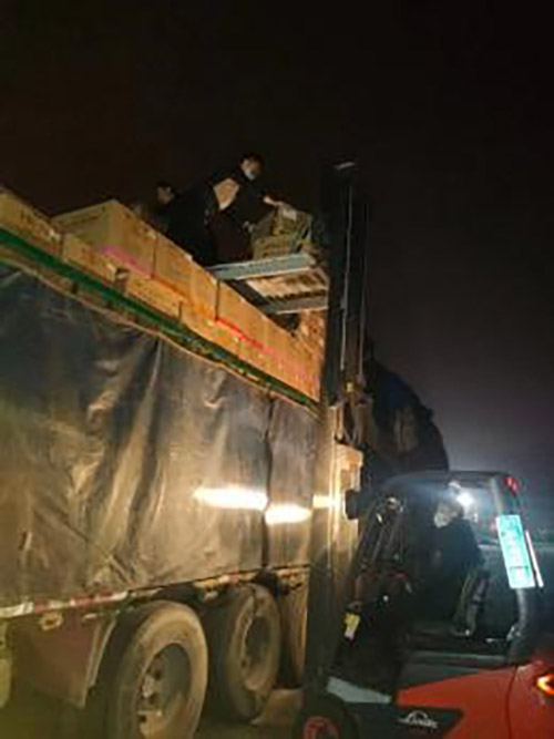 29號一早,琦總頂著巨大的壓力前往多個相關部門辦理通行證,田金茹想盡一切辦法帶領廠內司機去接應辦理通行證的大車司機。大家分頭行動,爭分奪秒,與疫情賽跑。接應司機的路上困難重重,轉了不知道多少條道路才把司機接到廠。誰都來不及訴說各自的不容易,在做好自身防護的同時,緊鑼密鼓地安排調貨、裝車、開票發貨。