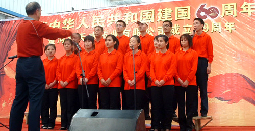 2009年9月29日是我公司建廠39周年改制11周年的日子,又恰逢新中國成立60周年,和著全國人民大慶的節(jié)拍,我公司于2009年9月30日舉行了隆重的慶典活動。大會由公司副總王顥主持,公司副總田長友在會上做了2009年1-9月份工作匯報,副總徐福河宣讀了2009年度工資調(diào)整方案,之后公司董事長兼總經(jīng)理王振剛做了關(guān)于企業(yè)文化的重要報告。領(lǐng)導(dǎo)講話結(jié)束后,舉行了“唱紅歌”大合唱歌詠比賽,全公司共有十九個代表隊參加了比賽。最后,在全體干部員工“歌唱祖國”的歌聲中,慶典活動圓滿結(jié)束。該活動極大地振奮了干部員工的精神,弘揚了企業(yè)文化,為公司今后的發(fā)展指明了方向。